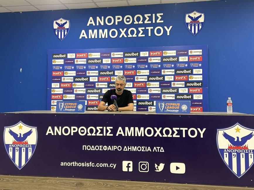 Το πρώτο σχόλιο: «Να αναφερθώ αποκλειστικά στο ποδοσφαιρικό, εξαιρετική ατμόσφαιρα για ποδόσφαιρο λόγω του κόσμου. Ήρθαμε ξέροντας ότι η Ανόρθωση θα βάλει πίεση σε όλες τις γραμμές. Θέλαμε να κρατήσουμε τον αντίπαλο μακριά από την περιοχή μας. Δεχθήκαμε ένα τέρμα από στημένο και δεν έχουμε δικαιολογία σε αυτό γιατί δουλέψαμε πολύ σε αυτό το «κομμάτι». Όταν χάνεις δύο φορές σε αυτό το γήπεδο και αντιδράς, κάτι σημαίνει για την ομάδα. Παίξαμε με αρκετά προβλήματα, με παίκτες που δεν προπονήθηκαν ολόκληρη την εβδομάδα και με αρκετούς σε άλλες θέσεις. Θεωρώ πως το αποτέλεσμα για εμάς είναι επιτυχία. Να ευχηθώ καλή συνέχεια στην Ανόρθωση.»