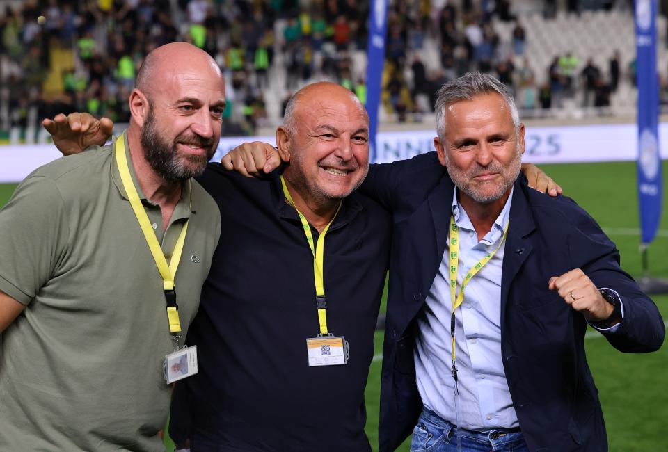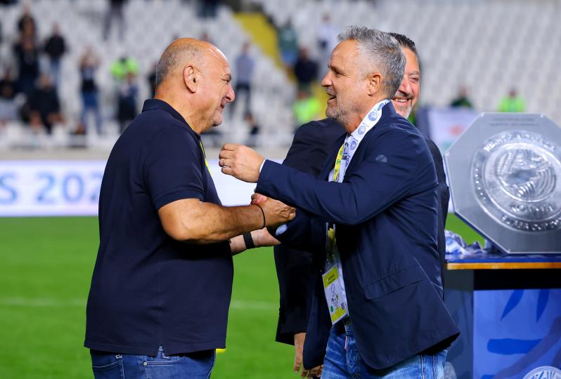 Και πως να μην είναι χαρούμενος ο πρόεδρος της ΑΕΚ, Άντρος Καραπατάκης. Χαμογελαστός και ευδιάθετος μαζί με τους συνεργάτες του, μετά την κατάκτηση του Σούπερ Καπ, στην διαδικασία των πέναλτι κόντρα στην Πάφος FC. Επόμενος στόχος φυσικά, το πολυπόθητο τρόπαιο του πρωταθλήματος.