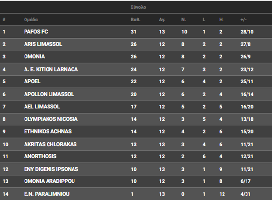 Άνοιξε τις διαφορές η Παφιακή ομάδα και βάζει πίεση στις ομάδες βρίσκονται στις πιο κάτω θέσεις. Θυμίζουμε, πως αυτή την αγωνιστική ο Άρης δοκιμάζεται στο ΓΣΠ κόντρα στον ΑΠΟΕΛ ενώ η Ομόνοια παίζει με τον Ολυμπιακό. Η ΑΕΚ φιλοξενεί τον Εθνικό Άχνας στην «Αρένα».