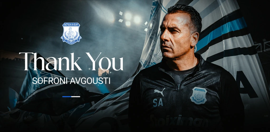 «H Εταιρεία Απόλλων Ποδόσφαιρο (ΔΗΜΟΣΙΑ) Λτδ ανακοινώνει τη λύση της συνεργασίας της με τον προπονητή Σωφρόνη Αυγουστή. Ευχαριστούμε θερμά τον κ. Αυγουστή που για μία ακόμη φορά, ανταποκρίθηκε στο κάλεσμα του Απόλλωνα τον περασμένο Δεκέμβριο, αναλαμβάνοντας την τεχνική ηγεσία της ομάδας μας σε μία πολύ δύσκολη χρονική περίοδο. Ευχόμαστε στον Σωφρόνη Αυγουστή, κάθε επιτυχία τόσο στην προσωπική όσο και στην επαγγελματική του σταδιοδρομία».