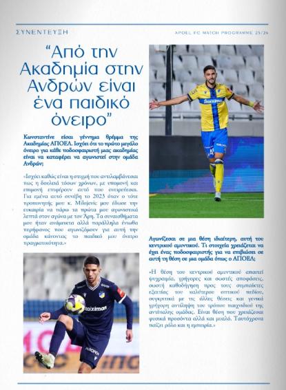 Ο νεαρός αμυντικός του ΑΠΟΕΛ Κωνσταντίνος Γιαννακού μίλησε στο περιοδικό του ΑΠΟΕΛ για το match programme ενόψει του αγώνα με την Ομόνοια Αραδίππου.