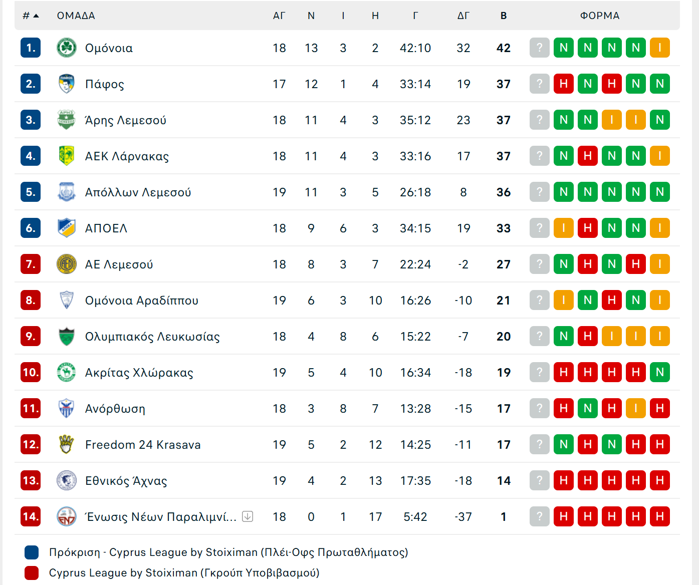 19:00 Άρης Λεμεσού - Ομόνοια Λευκωσίας