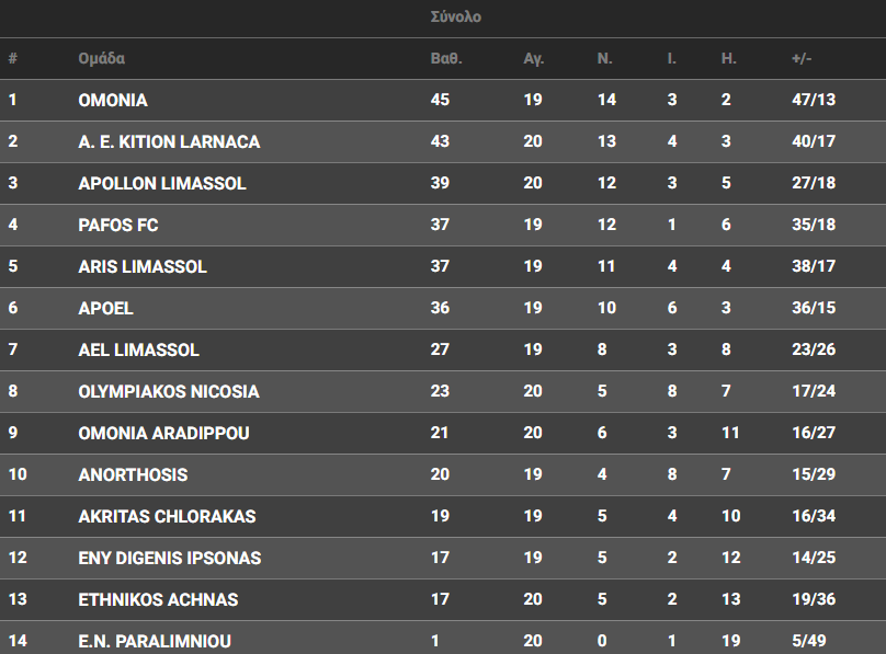 Στο Δασάκι ο Εθνικός Άχνας πέτυχε την πρώτη του νίκη μετά από 11 σερί ήττες κόντρα στην Πάφος FC και πήρε βαθμολογική ανάσα φτάνοντας στους 17 βαθμούς. Παραμένει όμως σε δύσκολη θέση ο Εθνικός καθώς παραμένει στην 13η θέση. Μεγάλο κάζο για την Πάφο που έμεινε στους 37 βαθμούς (19 αγώνες) και πλέον ειναι στην 4η θέση. Με αγώνα περισσότερο ο Απόλλωνας είναι στους 39 και η ΑΕΚ στους 43 όπως αναφέραμε και πιο πάνω.