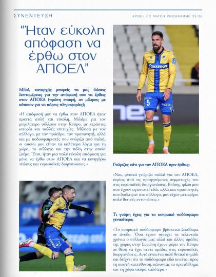 Ο Μίλος Ντέγκενεκ παραχώρησε συνέντευξη στο match programme του ΑΠΟΕΛ για το ντέρμπι με αντίπαλο την ΑΕΚ στην 21η αγωνιστική της Cyprus League by Stoiximan.