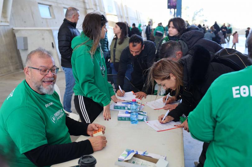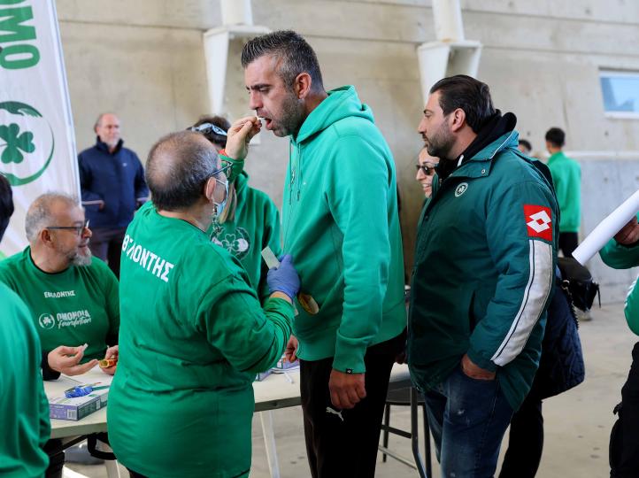 Ολοκληρώθηκε η δειγματοληψία συμβατού δότη μυελού των οστών για παιδί 1,5 χρονών, έξω από την Δυτική, Βόρεια και Ανατολική κερκίδα του ΓΣΠ, πριν τον αγώνα Ομόνοια-ΕΝΠ. Μια προτοβουλία από το OMONOIA Foundation και τους οργανωμένους οπαδούς της ομάδας, «Αιώνια πιστοί»
