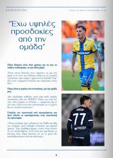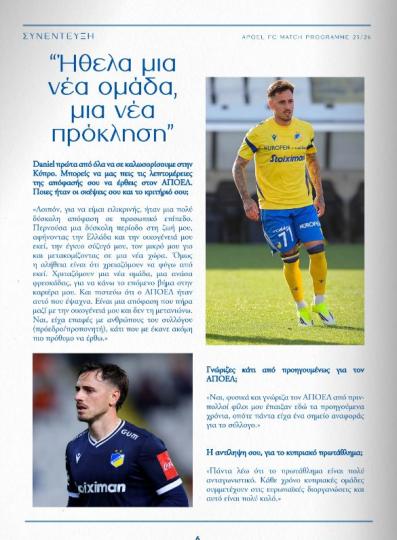 Ο Ντάνιελ Μαντσίνι, μιλώντας στο επίσημο match program του ΑΠΟΕΛ πριν από το ντέρμπι με την Ομόνοια για την 23η αγωνιστική της Cyprus League by Stoiximan, εξήγησε γιατί βρήκε στους «γαλαζοκίτρινους» την ιδανική επανεκκίνηση της καριέρας του.