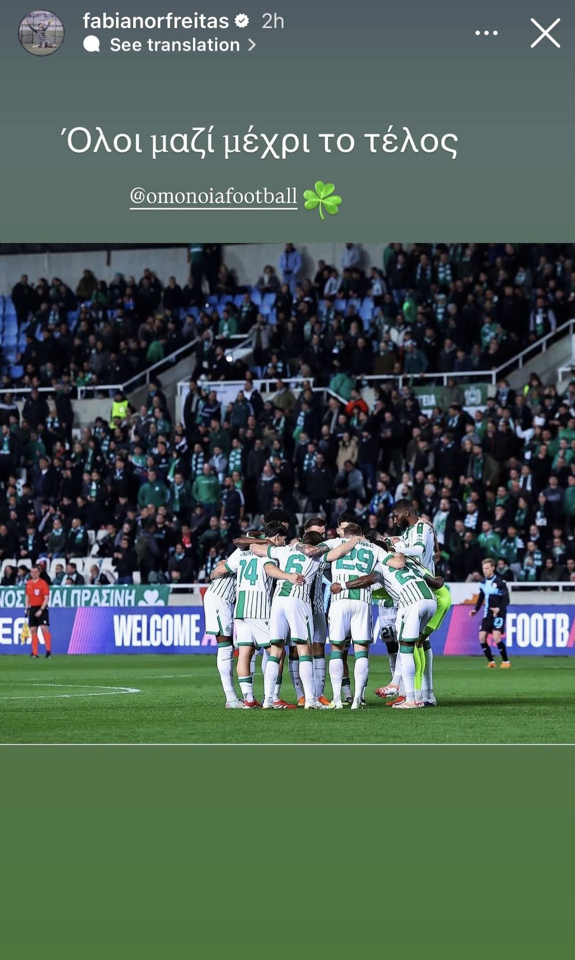 Μετά την ήττα από τον ΑΠΟΕΛ (1-0) στο πρωτάθλημα και τον αποκλεισμό από το Κόνφερενς Λιγκ από τη Ριέκα (3-1) κι εν όψει του ντέρμπι κορυφής με τον Απόλλωνα στο ΓΣΠ την ερχόμενη Δευτέρα (2.3) ο Φαμπιάνο έστειλε το δικό του μήνυμα!