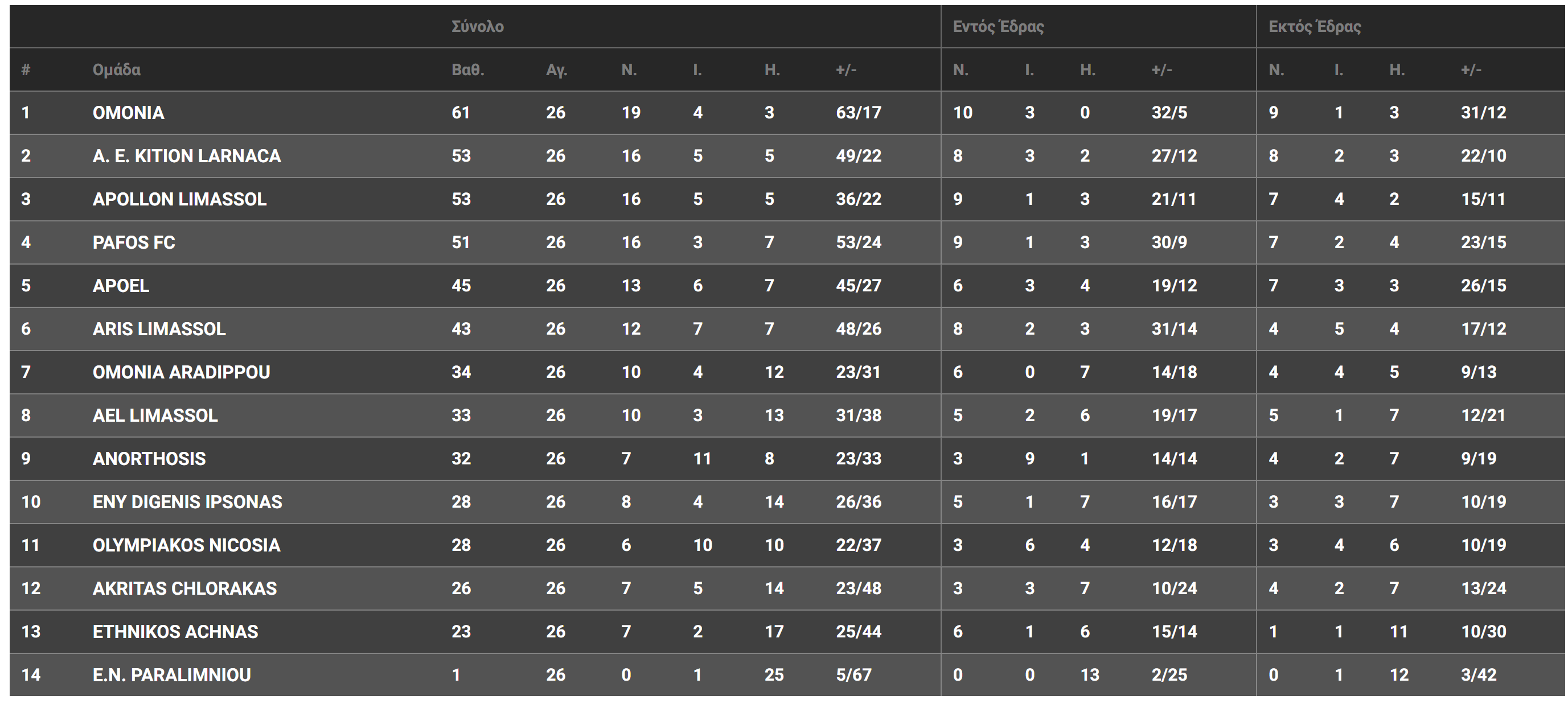 Ομόνοια Λευκωσίας – Ολυμπιακός Λευκωσίας 5-0