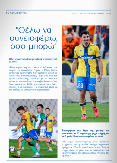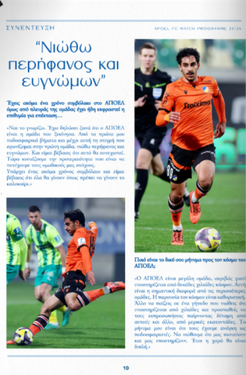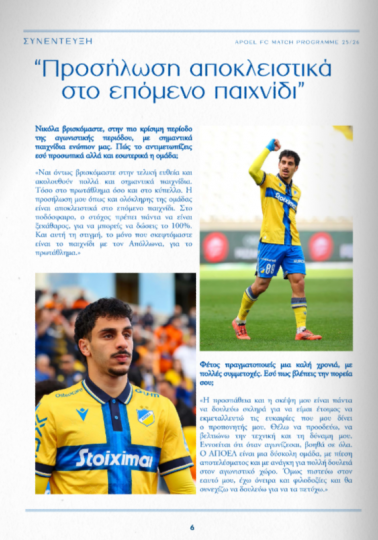 Στο επίσημο πρόγραμμα του σημερινού αγώνα με αντίπαλο τον Απόλλωνα μίλησε ο ποδοσφαιριστής του ΑΠΟΕΛ, Νικόλας Κούτσακος.