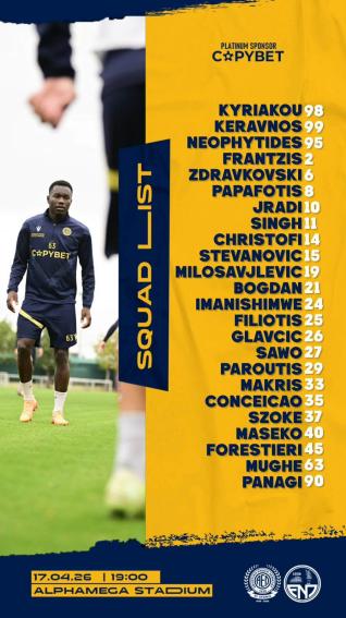 Η ΑΕΛ ανακοίνωσε και επίσημα την αποστολή για την αναμέτρηση με την ΕΝΠ στο θεσμό του πρωταθλήματος που πρόκειται να διεξαχθεί στο «Alphamega».