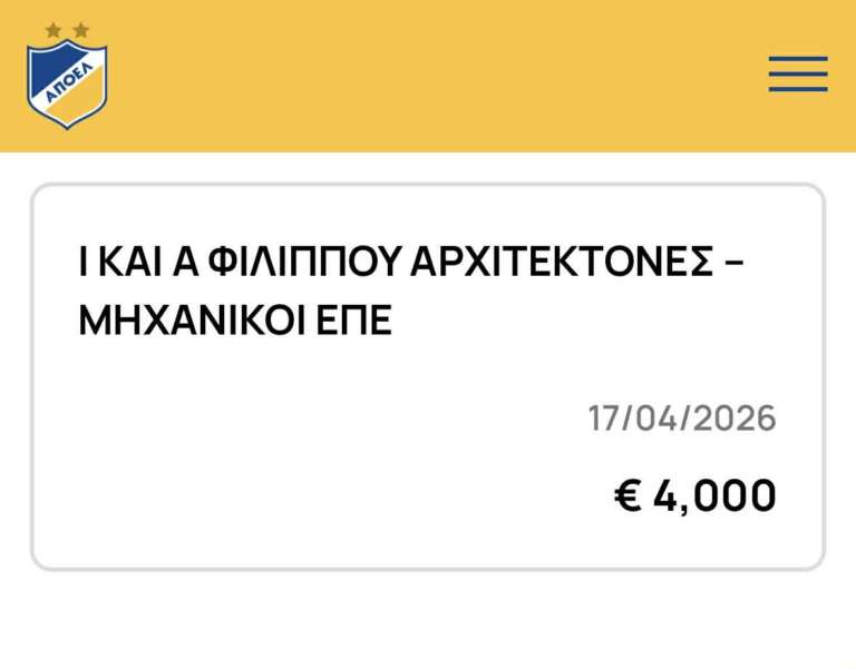 Πρόκειται για αρχιτεκτονικό γραφείο με μακρά και διαχρονική σχέση με τη «γαλαζοκίτρινη» οικογένεια, το οποίο συμμετέχει ενεργά και στο ambitious project του νέου γηπέδου του ΑΠΟΕΛ, που προγραμματίζεται να ανεγερθεί και αποτελεί «όνειρο» για τον κόσμο. Η συγκεκριμένη κίνηση δεν έχει μόνο πρακτική οικονομική αξία, αλλά λειτουργεί και ως μήνυμα εμπιστοσύνης στο πλάνο αναγέννησης του συλλόγου της Λευκωσίας μέσα από δυσκολίες.