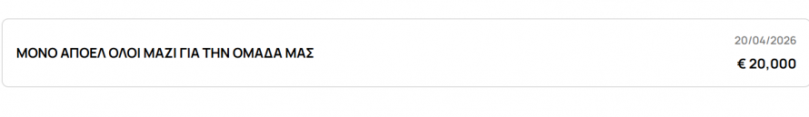 Τεράστια εισφορά στην πλατφόρμα οικονομικής ενίσχυσης του ΑΠΟΕΛ. Συγκεκριμένα, έχει κατατεθεί το ποσό των 20 χιλιάδων ευρώ (ΜΟΝΟ ΑΠΟΕΛ ΟΛΟΙ ΜΑΖΙ ΓΙΑ ΤΗΝ ΟΜΑΔΑ ΜΑΣ) το οποίο είναι το μεγαλύτερο μέχρι στιγμής. Να σημειωθεί, πως το συνολικό ποσό που έχει μαζευτεί από τον κόσμο έχει ξεπεράσει τις 432 χιλιάδες ευρώ.