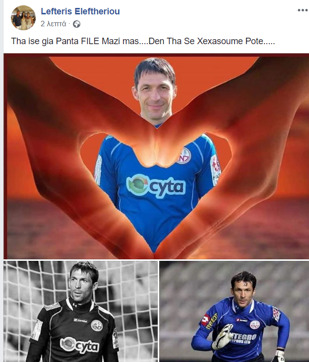 Ο τερματοφύλακας που φόρεσε τη φανέλα της Ένωσης Νέων Παραλιμνίου από το 2005 μέχρι το 2012, το 2014 έχασε την ζωή του σε αυτοκινητιστικό δυστύχημα και πιο κάτω μπορείτε να δείτε την ανάρτηση του Ελευθερίου.