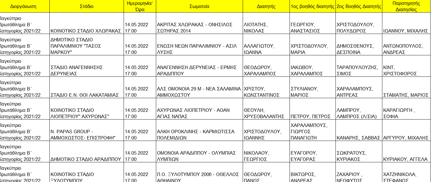 Η ΚΟΠ ανακοινώνει τους διαιτητές, βοηθούς διαιτητές και παρατηρητές διαιτησίας των αγώνων της 30ης αγωνιστικής του Πρωταθλήματος Β' Κατηγορίας που θα διεξαχθούν το Σάββατο 14 Μαϊου 2022.