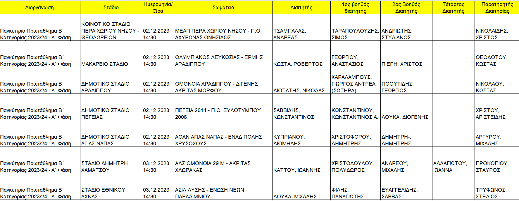 Η ΚΟΠ ανακοινώνει τους διαιτητές των αγώνων της 10ης αγωνιστικής του Πρωταθλήματος Β' Κατηγορίας που θα διεξαχθούν το Σαββατοκύριακο 2-3 Δεκεμβρίου 2023.