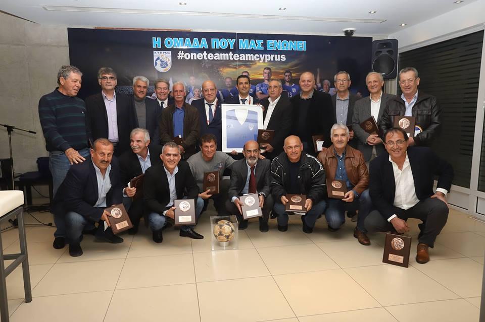 "Αφήσατε μια σπουδαία παρακαταθήκη στο Κυπριακό ποδόσφαιρο. Καθυστερήσαμε να σας τιμήσουμε, αλλά έστω και τώρα, ως Κυπριακή Ομοσπονδία Ποδοσφαίρου αναγνωρίζουμε τη μεγάλη σας προσφορά στην Εθνική μας και στο Κυπριακό ποδόσφαιρο", ανέφερε απευθυνόμενος προς τους τιμώμενους ο Πρόεδρος της ΚΟΠ Γιώργος Κούμας.