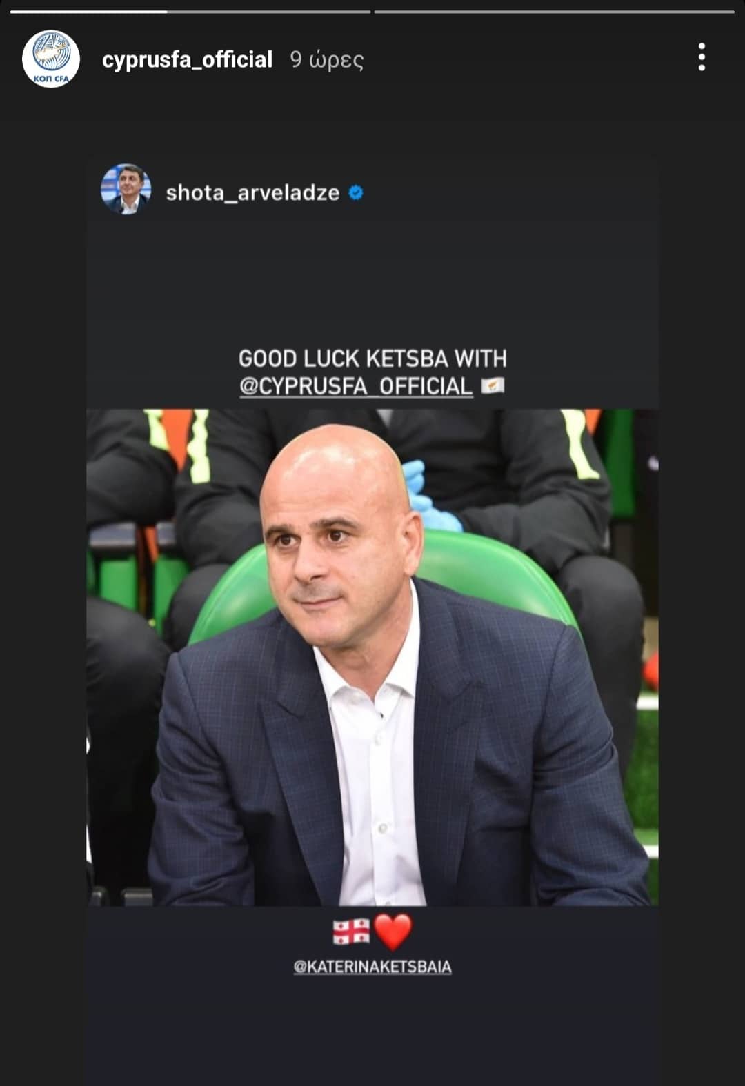 Και οι δύο Γεωργιανοί, πλέον και οι δύο προπονητές, οπότε γνωρίζουν από πρώτο χέρι το επάγγελμα. Έτσι ο Σότα με την πιο κάτω ανάρτηση ευχήθηκε κάθε επιτυχία στον Τιμούρ και την Εθνική Κύπρου.