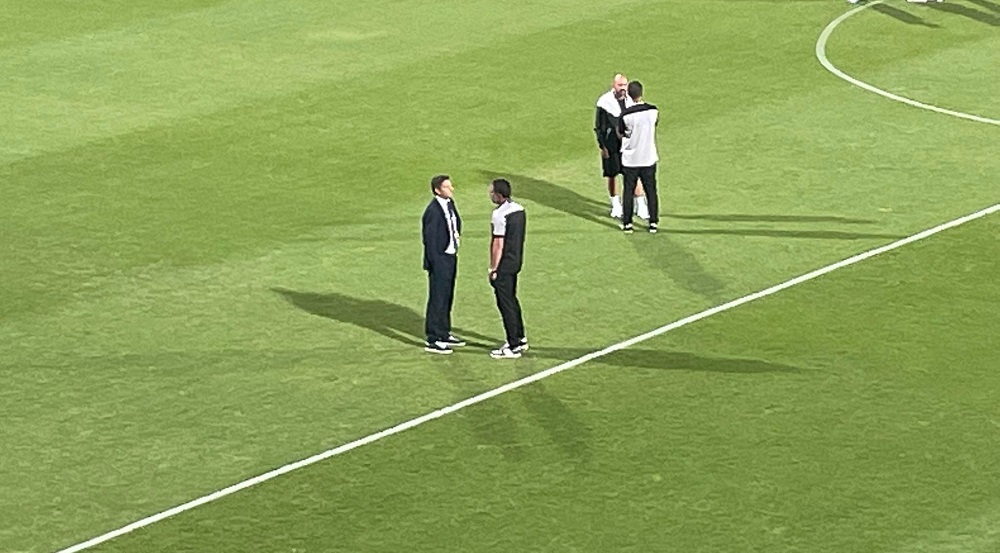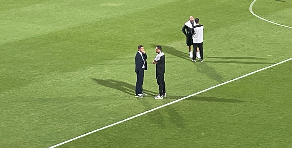 Όπως ακριβώς ο Μιχάλης Κωνσταντίνου και ο Τάκης Φύσσας, οι οποίοι είχαν την ευκαιρία να τα πουν από κοντά μέσα στον αγωνιστικό χώρο, λίγο πριν τη σέντρα του παιχνιδιού.