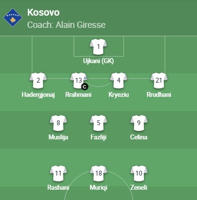 Δείτε την αρχική ενδεκάδα που επέλεξη ο προπονητής της εθνικής ομάδας του Κοσόβου, για τον σημερινό αγώνα με αντίπαλο την εθνική Κύπρου.