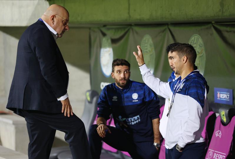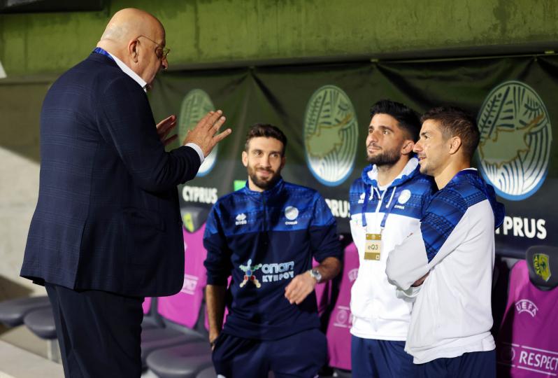 Σύντομη συνομιλία με Εφραίμ, Οικονομίδη και Χριστοφή είχε ο πρόεδρος της ΚΟΠ Γιώργος Κούμας πριν την έναρξη της αναμέτρησης Κύπρος-Βουλγαρία.