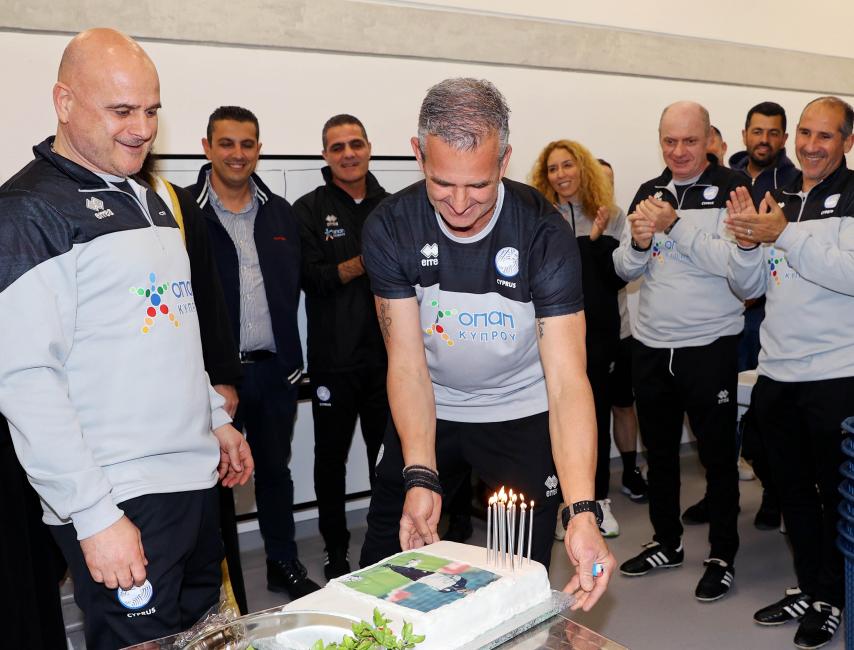Ο Ομοσπονδιακός μας προπονητής έσβησε τα κεράκια, όλοι του ευχήθηκαν χρόνια πολλά και πλέον άπαντες στρώθηκαν στη δουλειά για το επίσημο ματς απέναντι στην Σκωτία.