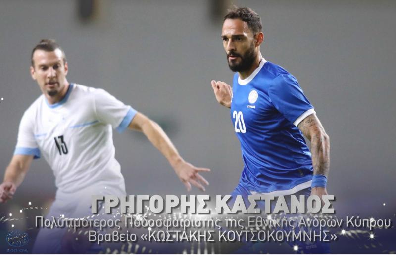 *Ο Γρηγόρης Κάστανος ως πολυτιμότερος ποδοσφαιριστής της Εθνικής μας ομάδας Ανδρών