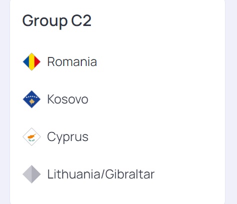 Δ' Κατηγορία: Λιθουανία ή Γιβραλτάρ, Μολδαβία, Μάλτα Ανδόρρα, Σαν Μαρίνο, Λιχτενστάιν.