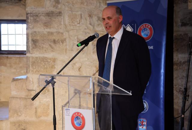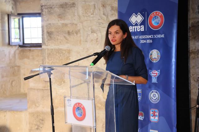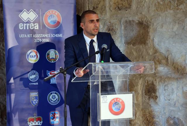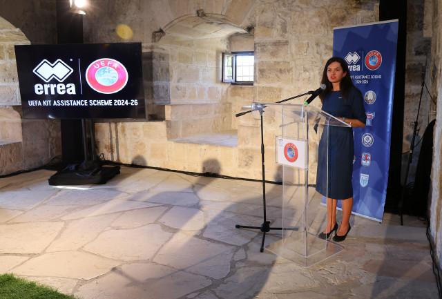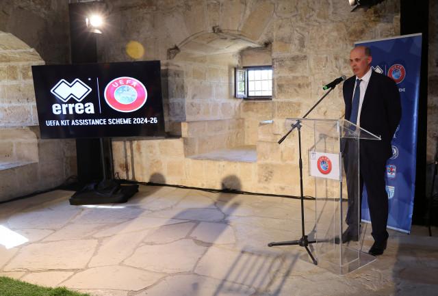 Σε εκδήλωση που πραγματοποιήθηκε στο Μεσαιωνικό Κάστρο Κολοσσίου στη Λεμεσό παρουσιάστηκαν οι επίσημες εμφανίσεις της Εθνικής μας ομάδας όπως επίσης και άλλων εννέα Εθνικών ομάδων οι οποίες συμμετέχουν στο σχέδιο παροχής αθλητικού υλικού της UEFA .