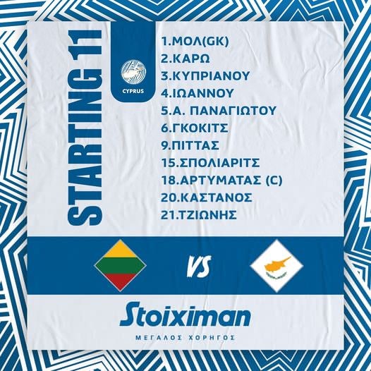 ΚΥΠΡΟΣ: Μαλ, Καρώ, Κυπριανού, Ιωάννου, Ανδρ. Παναγιώτου, Γκόγκιτς, Πίττας, Σπόλιαριτς, Αρτυματάς, Κάστανος, Τζιωνής.