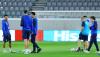 Χαλαρή κουβεντούλα από τους διεθνείς μας στην πρώτη τους βόλτα στο γήπεδο πριν τον αγώνα με την Αυστρία.