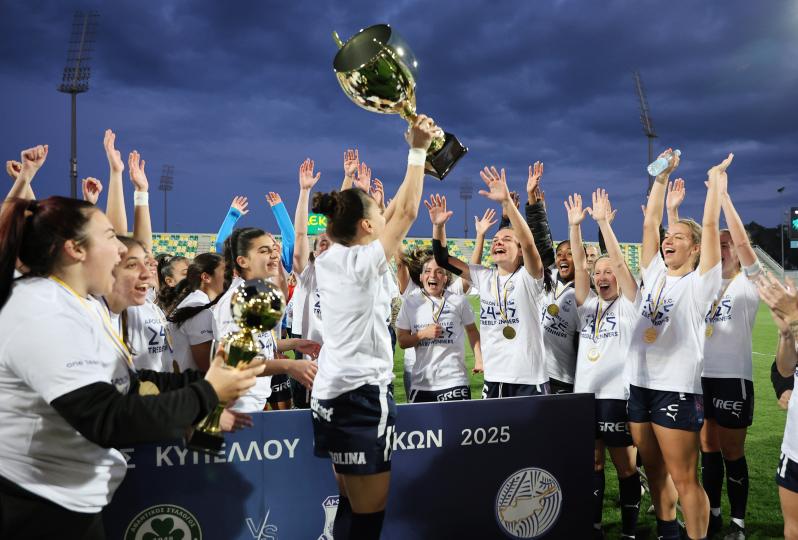 Η Απόλλων Ladies κατέκτησε το 14ο κύπελλο στην ιστορία της (4ο σερί) αφού νίκησε με ανατροπή 2-1 την Ομόνοια στην «ΑΕΚ Αρένα». Οι παίκτριες της ομάδας του Λοράντ Φασότ, μέσα σε πανηγυρικό κλίμα, σήκωσαν το τρόπαιο όπως μπορείτε να δείτε και στις πιο κάτω φωτογραφίες