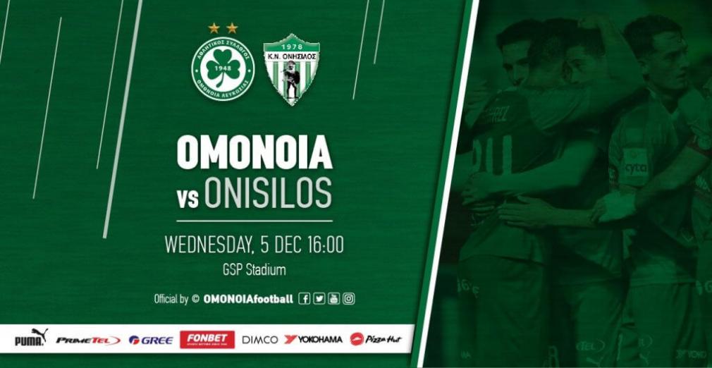 Έχει ξεκινήσει η διάθεση των εισιτηρίων για τον αγώνα με τον Ονήσιλο, στο πλαίσιο της πρώτης φάσης του κυπέλλου Coca – Cola. Ο αγώνας θα διεξαχθεί την Τετάρτη, 5 Δεκεμβρίου, στο στάδιο ΓΣΠ και θα ξεκινήσει στις 16:00.