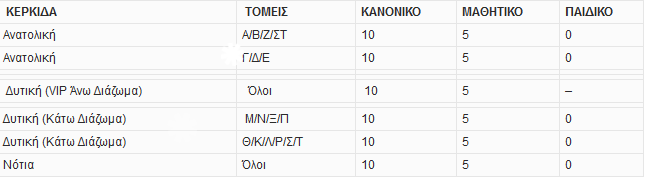 Οι τιμές των εισιτηρίων έχουν οριστεί ως εξής: