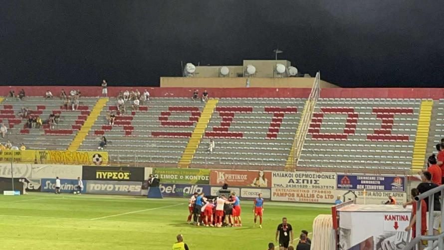 Η Νέα Σαλαμίνα, μετά το χαμένο πέναλτι του Λουκά, κατάφερε να μπει μπροστά στο σκορ. Ο Κώστας Χαραλάμπους, με κεφαλιά μετά από εκτέλεση κόρνερ, έστειλε την μπάλα στα δίχτυα και έδωσε το προβάδισμα στην ομάδα του.