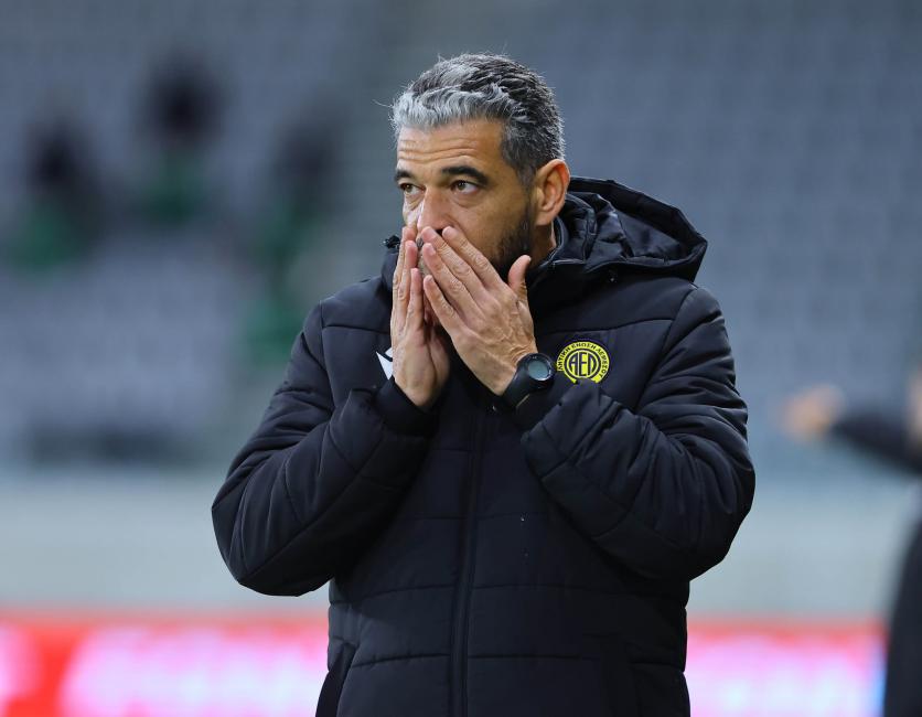 Την ώρα που η μπάλα τραντάζει το κάθετο δοκάρι από σουτ του Κονσεϊσάο, ο προπονητής των «γαλαζοκιτρίνων» μένει ακίνητος, με τα χέρια να καλύπτουν το πρόσωπο, σε μια αυθόρμητη αντίδραση που αποτυπώνει το μέγεθος της απογοήτευσης στη «μάχη». Η ΑΕΛ θέλει την πρόκριση, με την οποία θα συνεχίσει να ελπίζει σε δυνατή διάκριση.