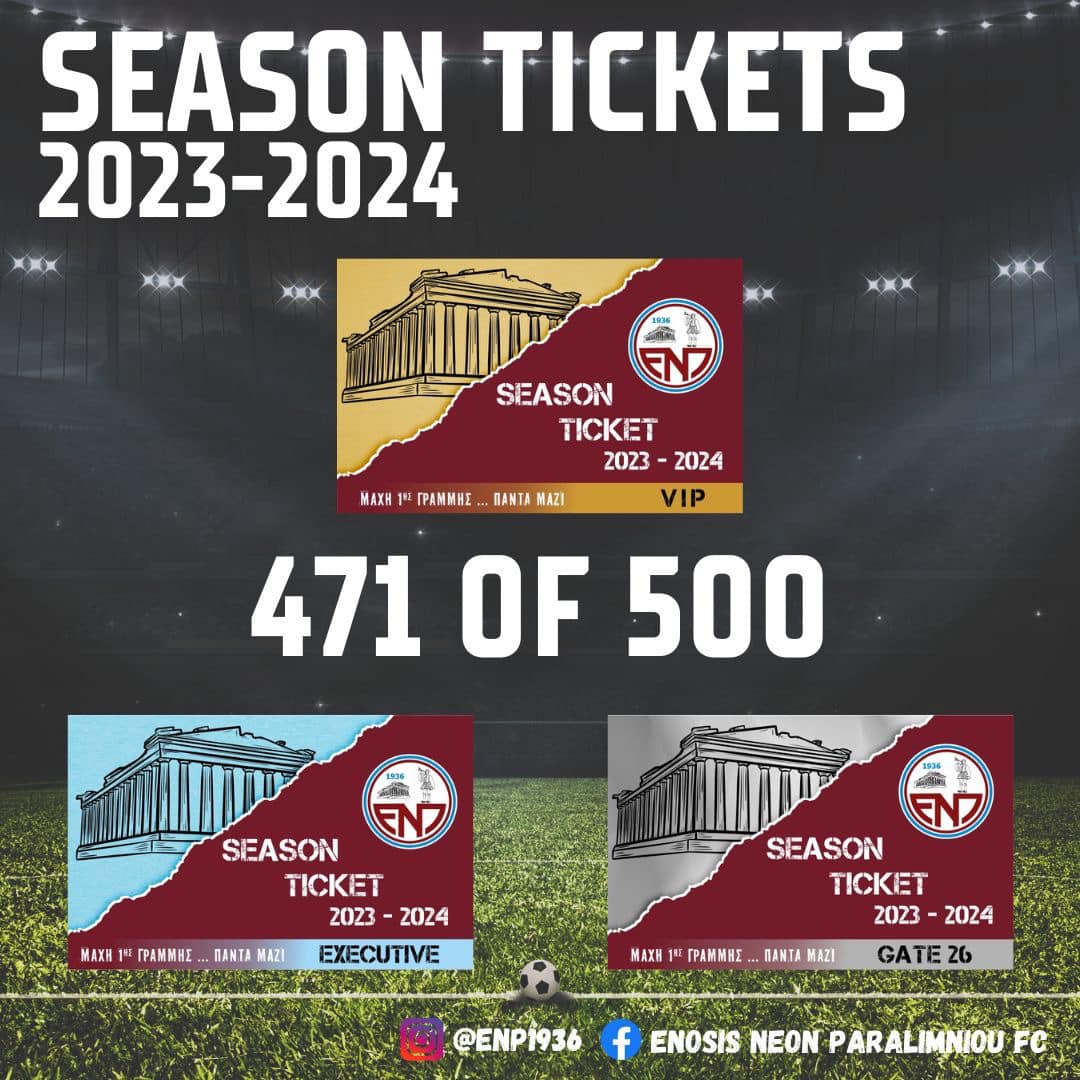 Η ΕΝΠ ενημέρωσε πως πλησιάζει στον στόχο που έχει θέσει των 500 εισιτηρίων διαρκείας.