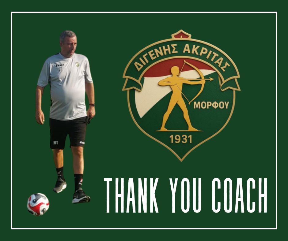 Ο ΔΙΓΕΝΗΣ ΑΚΡΙΤΑΣ ΜΟΡΦΟΥ ανακοινώνει τη διακοπή της συνεργασίας με τον προπονητή Nedim Tutic. Η διοίκηση του Σωματείου μας ευχαριστεί τον Nedim Tutic για την προσφορά του στην ομάδα μας και του εύχεται καλή επιτυχία στην προσωπική και επαγγελματική του ζωή.