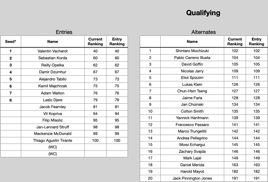 Γεγονός είναι ότι στα προκριματικά βρίσκονται πολύ καλά ονόματα, όπως αυτά των Σεμπάστιαν Κόρντα, Ρέιλι Οπέλκα, Νταμίρ Τζουμχούρ, Αλεχάνδρο Ταβίλο και Γιάν Λέναρντ Στρουφ.