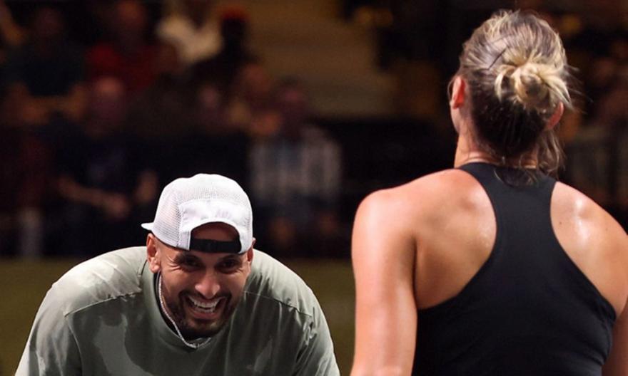 Ο Νικ Κύργιος νίκησε 6-3, 6-3 την Αρίνα Σαμπαλένκα σε ένα ιδιαίτερο event με τροποποιημένους κανόνες, σε μια άτυπη «μάχη των φύλων» στο τένις.